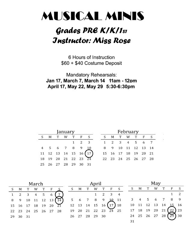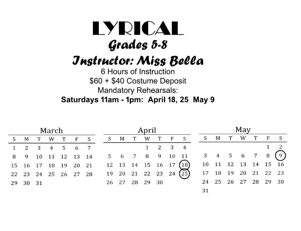 Individual class rehearsals – May 31, June 1, 2, 3, 2026