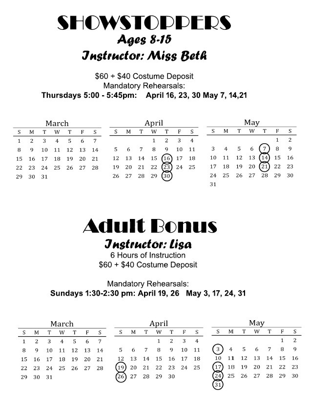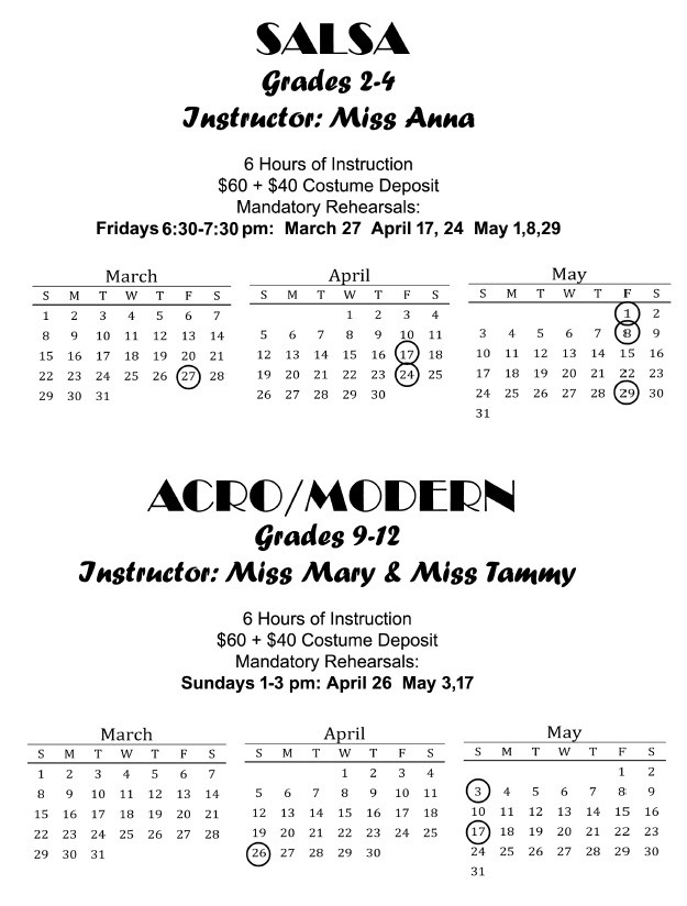 $40.00 due at time of costume measuring. Deposits are per costume for ALL classes including